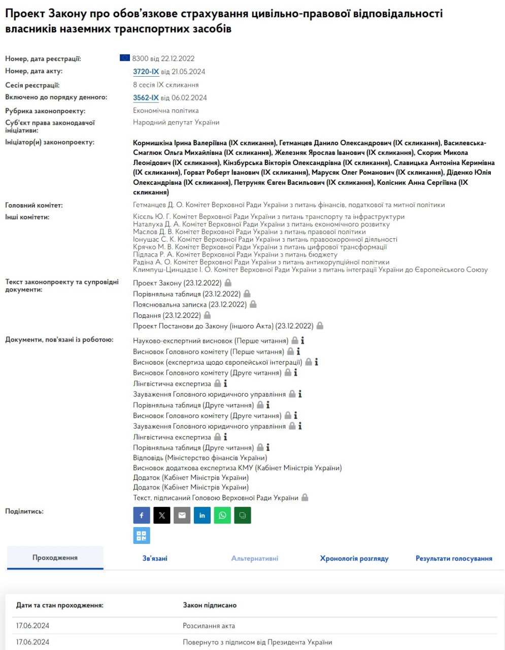 Президент Украины Владимир Зеленский подписал закон №8300 об обязательном страховании гражданско-правовой ответственности владельцев наземных транспортных средств.