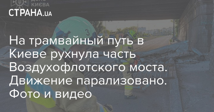 На трамвайный путь в Киеве рухнула часть Воздухофлотского моста. Движение парализовано. Фото и видео