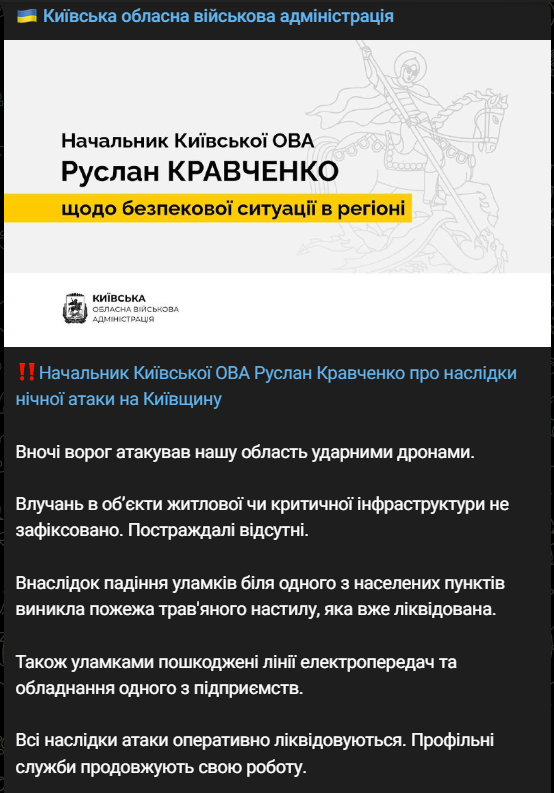 При этом, "попаданий в объекты жилой или критической инфраструктуры не зафиксировано".