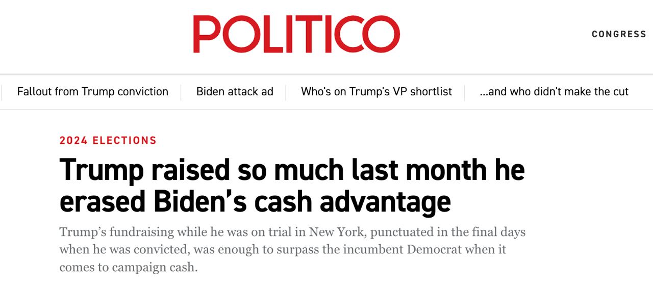 В мае Трамп обогнал Байдена в сборе средств на президентскую кампанию - Politico