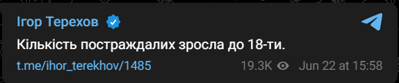 Об этом сообщает глава Харьковской ОВА Олег Синегубов и мэр города Игорь Терехов.