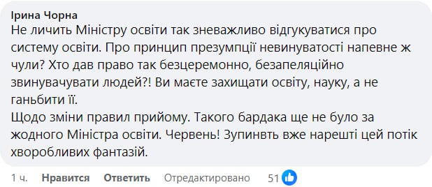 Ирина Черная: "Такого бардака еще не было ни при одном министре образования. Июнь! Остановите, наконец, этот поток болезненных фантазий".