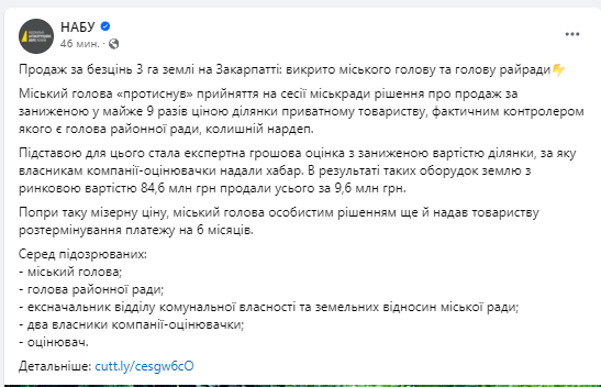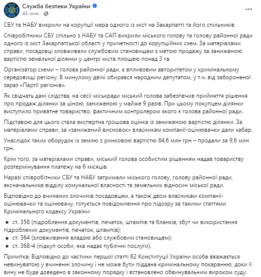 По данным следствия, Балога обеспечил принятие горсоветом решения о продаже более 3 гектаров коммунальной земли в центре Мукачево компании Ланьо по заниженной стоимости.
