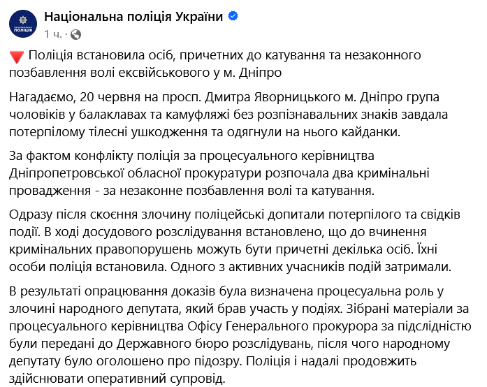 Полиция установила причастных к задержанию экс-военного Дмитрия Павлова в Днепре в ходе конфликта с народным депутатом Николаем Тищенко. Одного из них уже задержали.