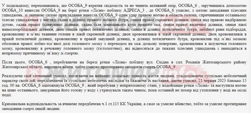 В Житомире женщина утопила гостя в реке за плевок в борщ, ее посадили на 10 лет