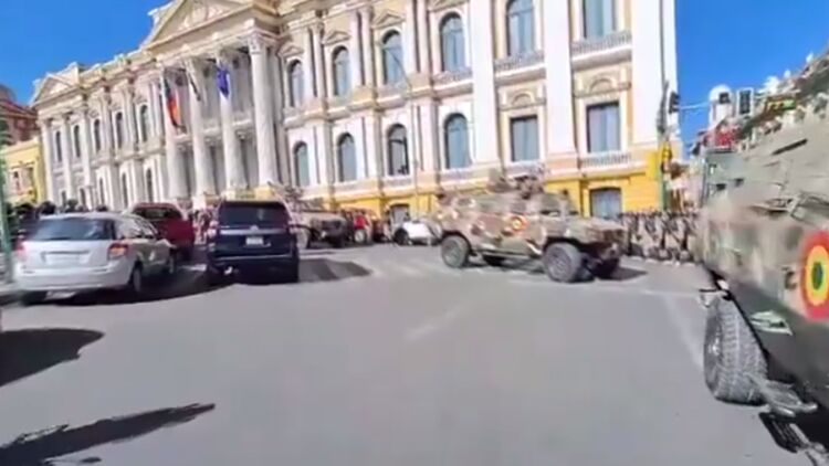 На первом видео – танк въехал на территорию президентского дворца в Ла-Пасе, на следующих – войска, которые подчиняются мятежному генералу Суньиге, ломают двери, чтобы попасть в дворец правительства в городе Ла-Пас с помощью бронетехники.