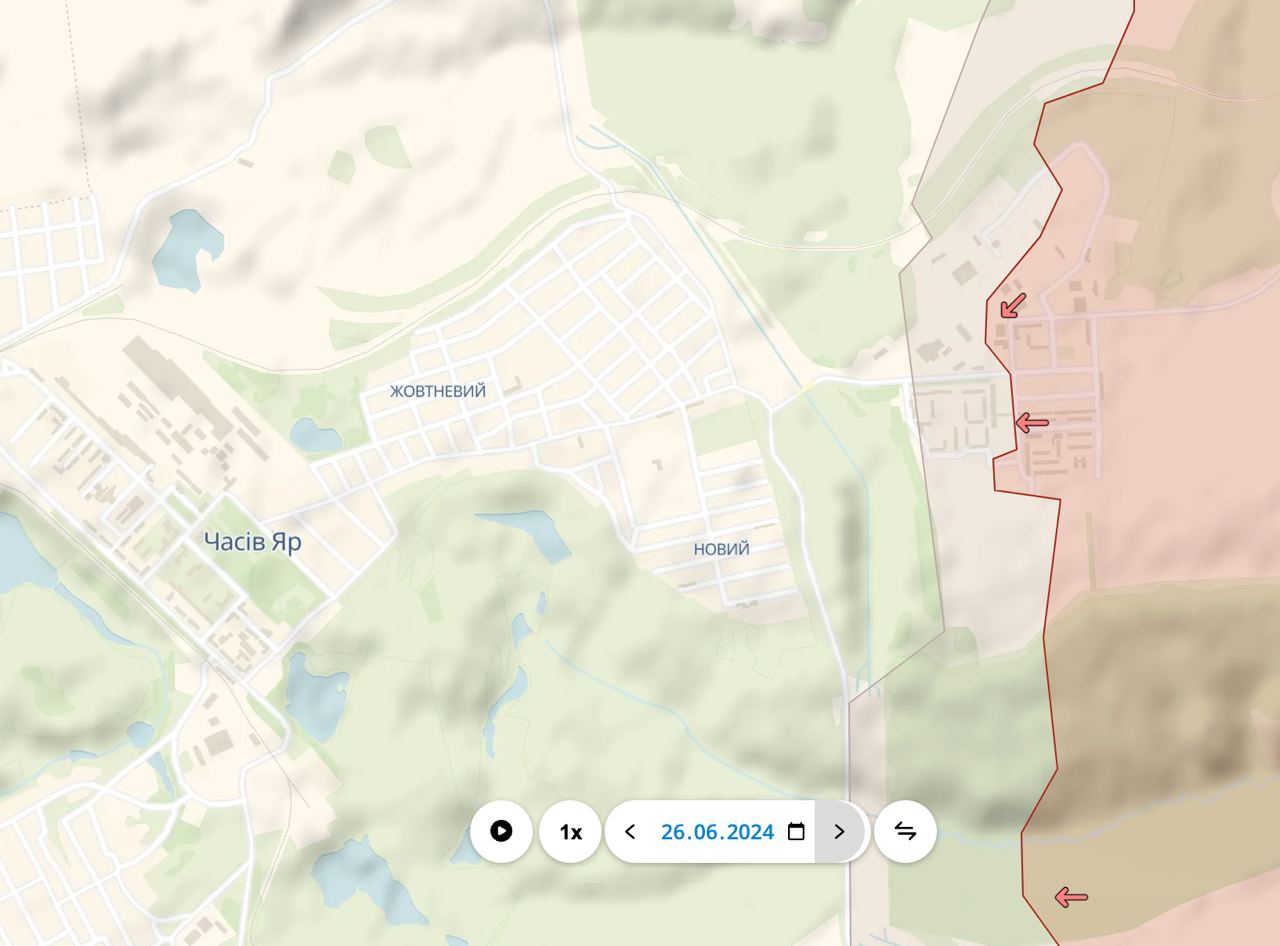 На данный момент, четкого объективного контроля того, где проходит линия фронта в Часов Яре, пока нет.