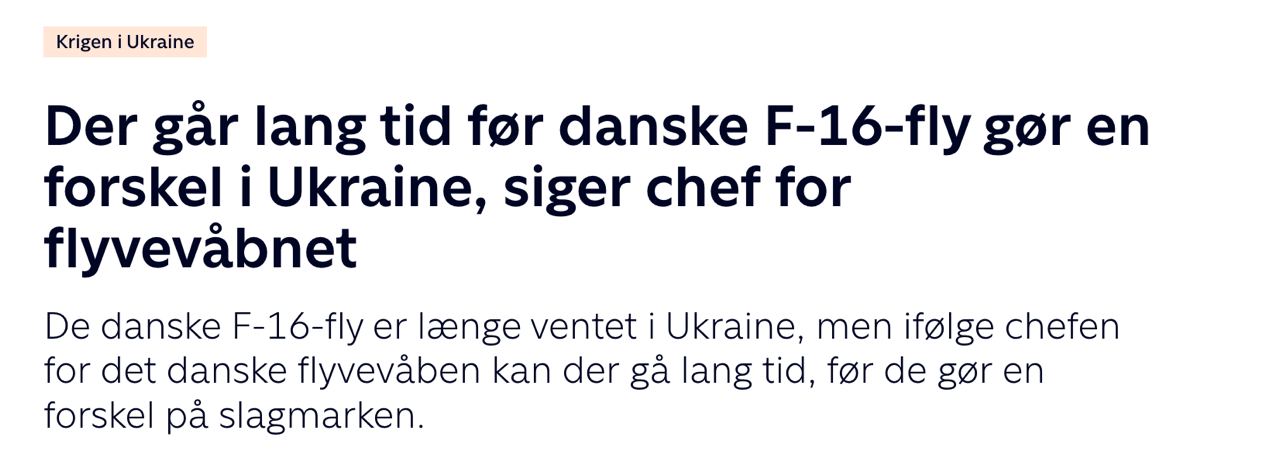 Ранее министр обороны Дании Троэльс Лунд Поульсен сообщил, что датские ВВС прекратят подготовку украинских пилотов на истребителях F-16 после 2024 года. По его словам, они находятся в процессе перехода от использования F-16 к истребителям F-35.
