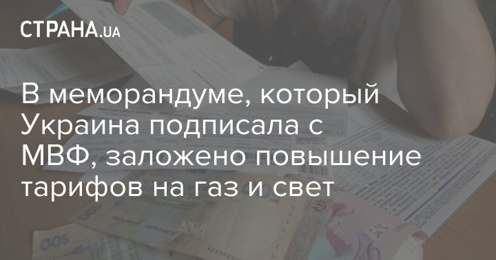 В меморандуме, который Украина подписала с МВФ, заложено повышение тарифов на газ и свет