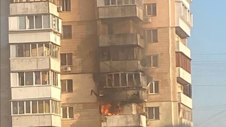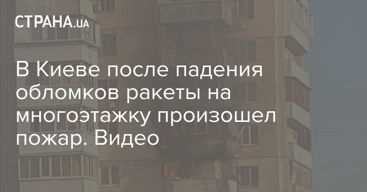 В Киеве после падения обломков ракеты на многоэтажку произошел пожар. Видео