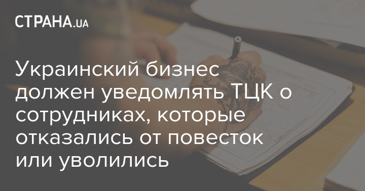 Бизнес должен безотлагательно уведомить ТЦК о работниках, которые отказались от получения повесток или уволились.