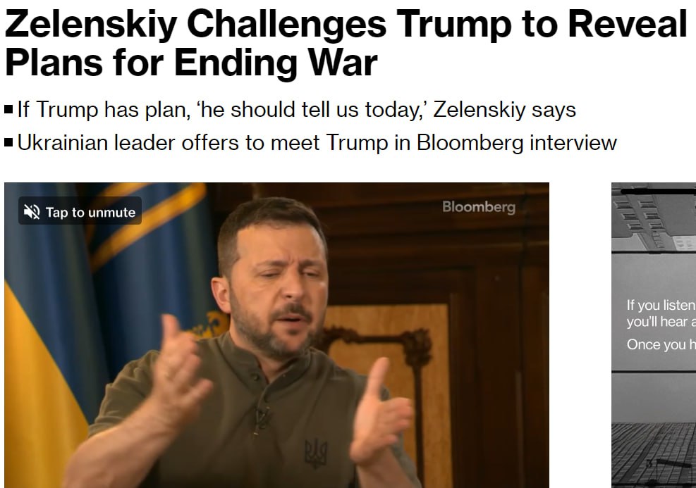 Об этом заявил президент Украины Владимир Зеленский в интервью Bloomberg.