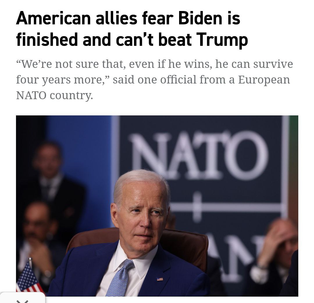 Один из британских министров выразился предельно прямо: "Могут ли доноры-демократы собраться с силами и отправить Байдена в отставку, чтобы у нас был хоть какой-то шанс на кандидата, заслуживающего доверия избирателей?"