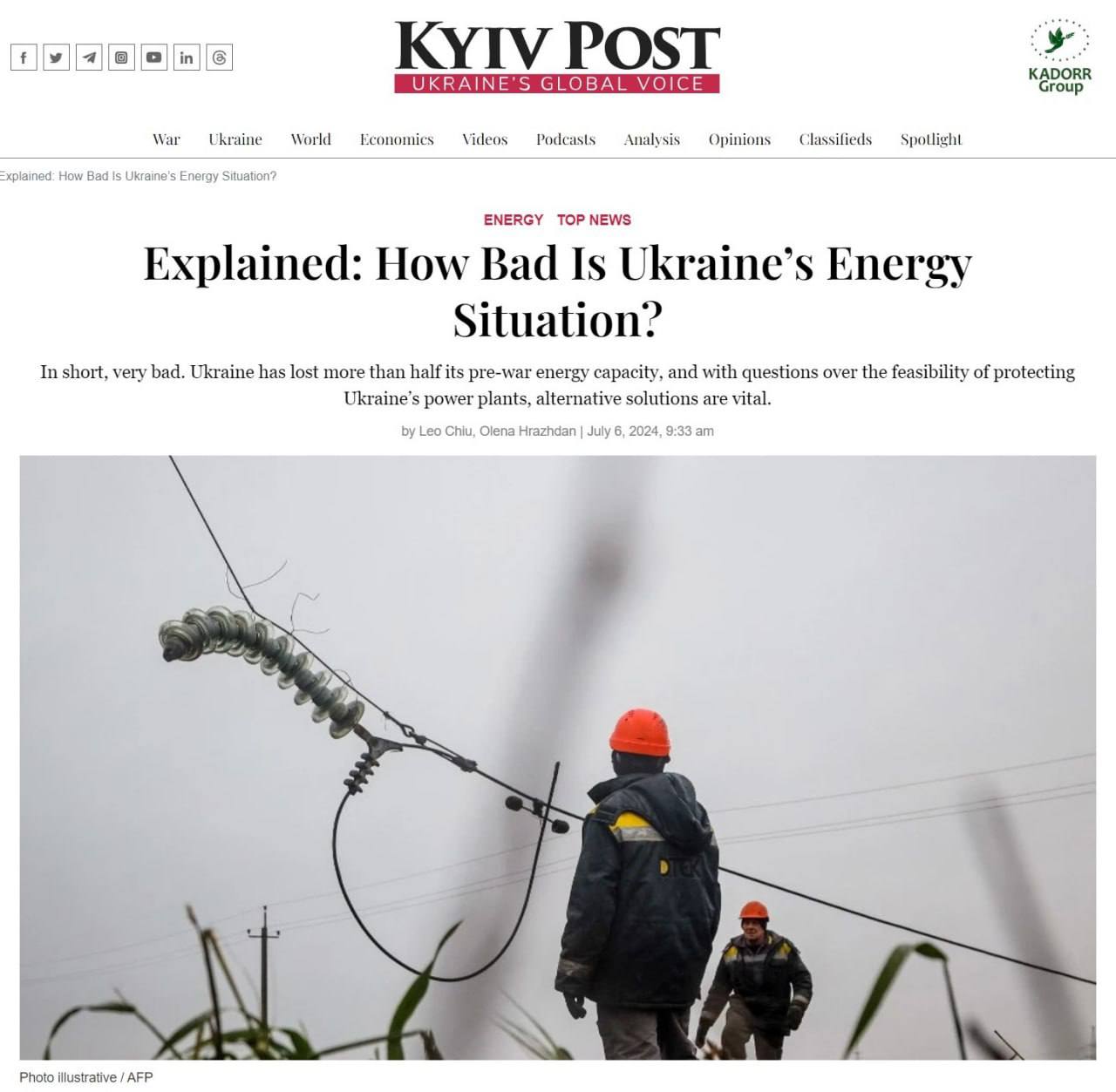 Украина потеряла более половины своих мощностей по производству электроэнергии, а зимой может не хватить электричества даже для водоснабжения и отопления.