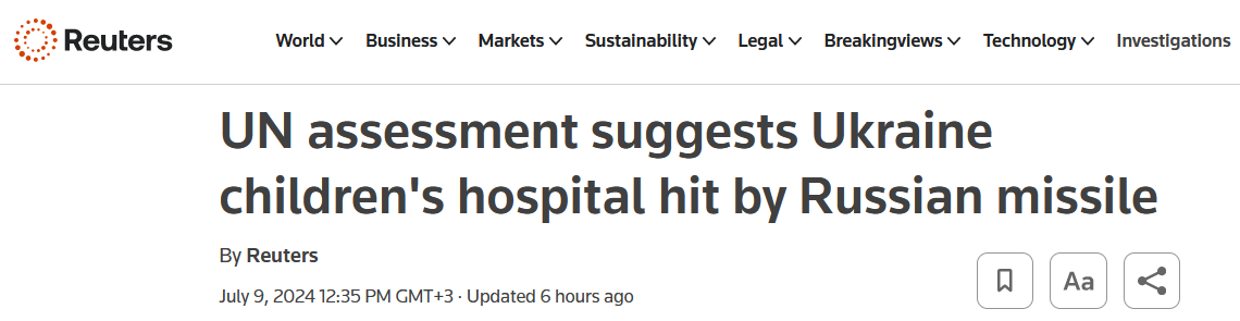 По детской больнице "Охматдет" в Киеве с "высокой вероятностью" попала российская ракета.