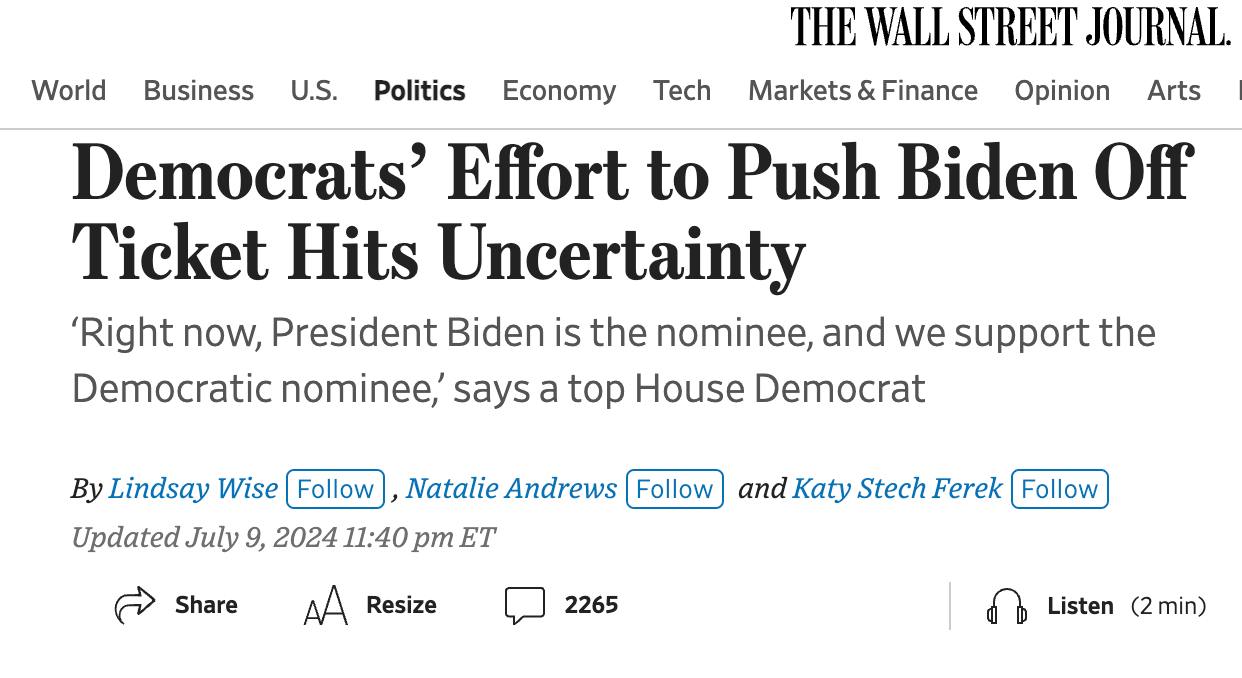 Также сообщалось, что доноры демократов рассматривают варианты, как элегантно убрать Байдена из предвыборной гонки.