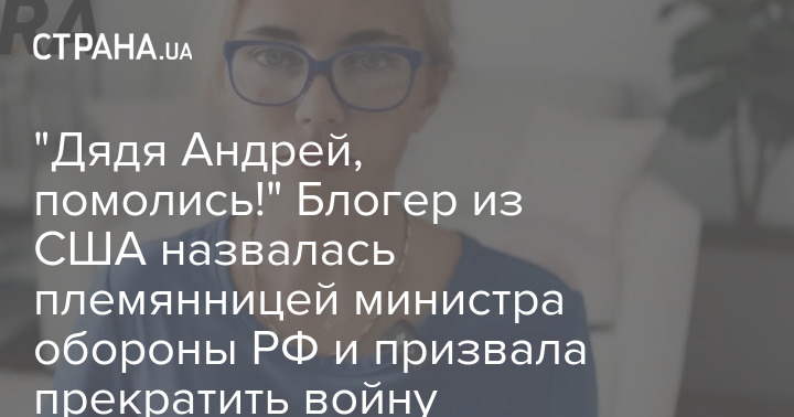 "Дядя Андрей, помолись!" Блогер из США назвалась племянницей министра обороны РФ и призвала прекратить войну
