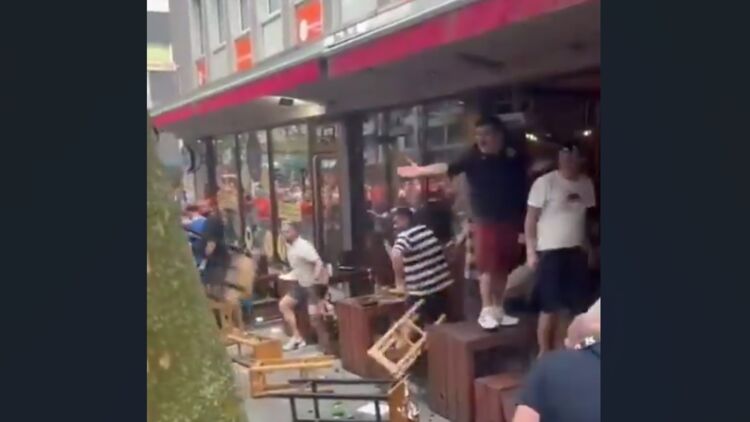 Нападение на английских фанов произошло в разных барах Дортмунда. Скриншот видео