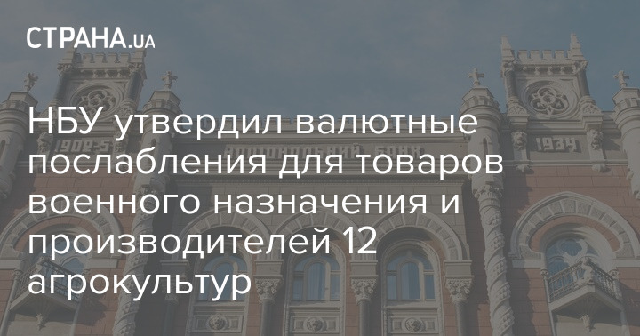 Национальный банк Украины утвердил валютные послабления с 11 июля для товаров военного назначения и производителей 12 агрокультур.