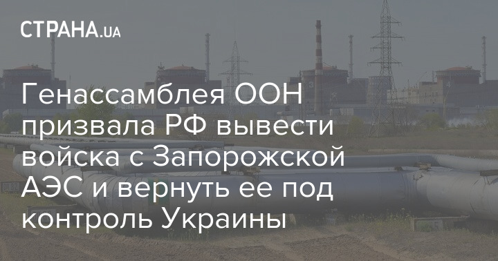 Генассамблея ООН призвала РФ вывести войска и персонал с Запорожской АЭС и вернуть ее под контроль Украины.