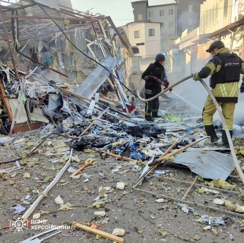 13.20 Последствия обстрела центра Херсона. Пострадали торговые киоски.