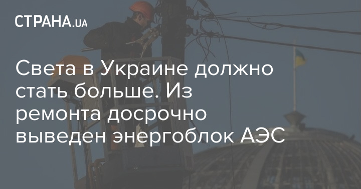 Министерство энергетики сообщает, что в ближайшее время света в Украине должно стать больше. Это обусловлено тем, что энергетики досрочно закончили плановый ремонт атомного энергоблока и подключили его к энергосистеме.