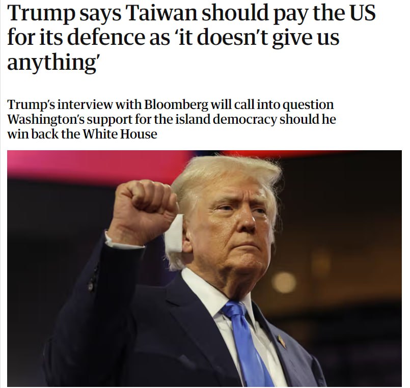 "Это заявление ставит под сомнение поддержку Вашингтоном островной демократии, если Трамп вернет себе Белый дом на президентских выборах в ноябре", – пишет The Guardian.