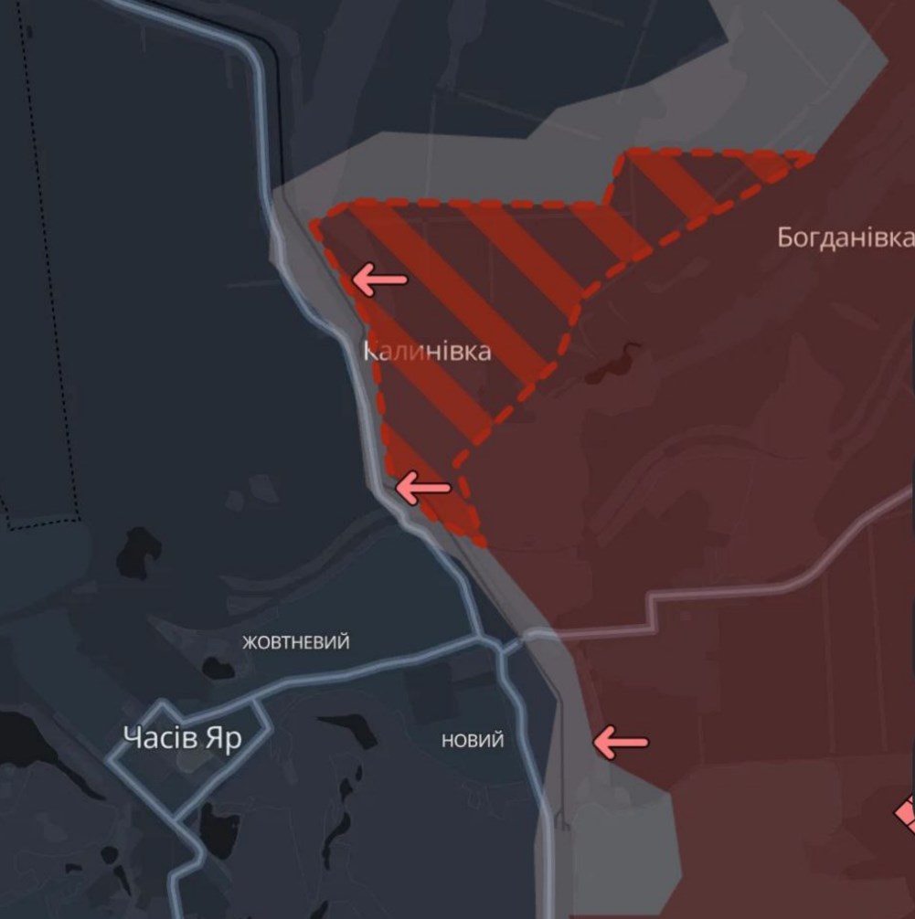 Также российские войска продвинулись в Калиновке к северу от Часова Яра. Судя по всему, они заняли там всю территорию восточнее канала Северский Донец - Донбасс. По каналу проходит линия обороны ВСУ в Часове Яре и его окрестностях.