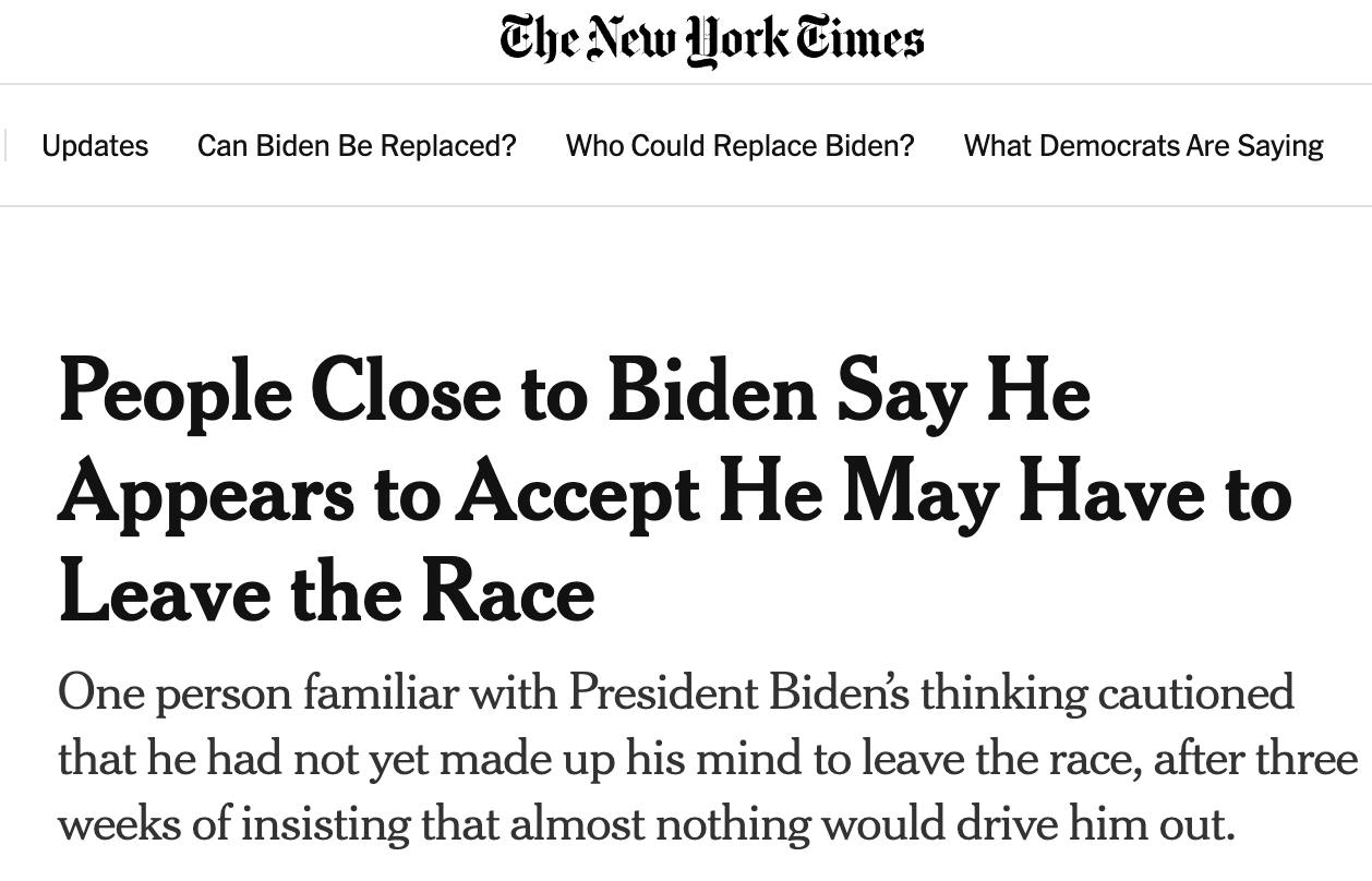 Напомним, издание Axios сообщало о возможном снятии Байдена с выборов уже в эти выходные.