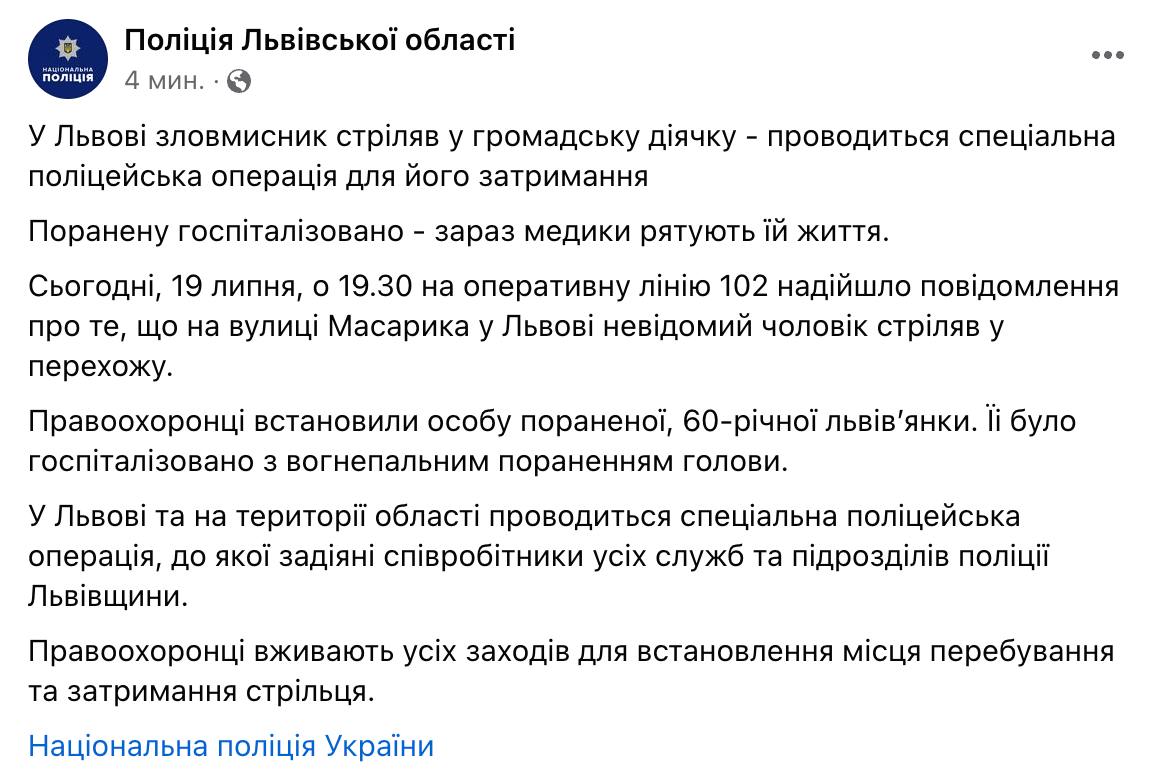 Львовская журналистка и телеведущая канала "Эспрессо" Марта Олиярник в своем Фейсбуке уточнила, что Фарион выстрелили в висок. Она добавила, что пока неизвестно, был ли выстрел смертельным.