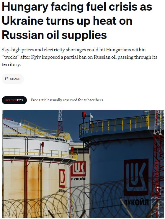 Венгрии грозит топливный кризис из-за перекрытия Украиной нефтяной трубы - Politico