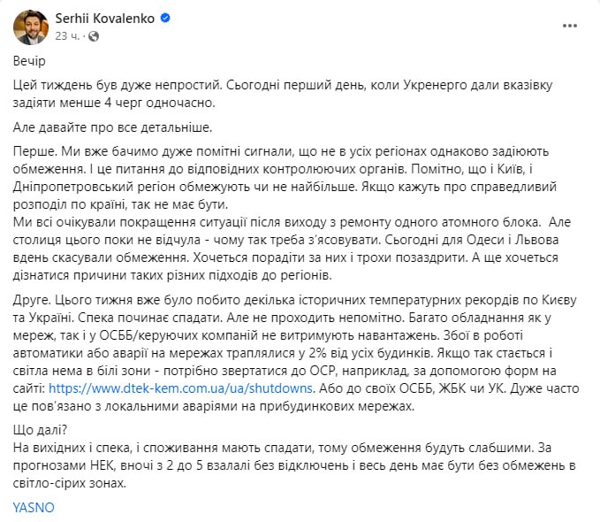 Об этой ситуации неоднократно писали СМИ, но теперь проблему подтвердил гендиректор YASNO Сергей Коваленко.