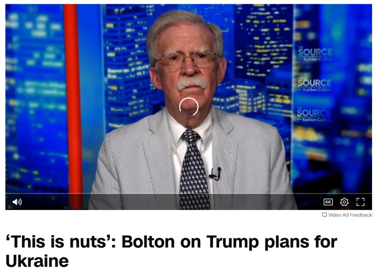 "Он (Трамп - Ред.) понятия не имеет, как собирается договариваться о прекращении этой войны, за исключением, как я думаю, что его приверженность Владимиру Путину приведет к уступкам российской стороне, которые будут разрушительными для Украины", - считает Болтон.