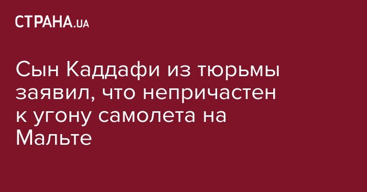 Находящийся в тюрьме сын Муаммара Каддафи Сейф аль-Ислам прокомментировал угол самолета на Мальте  -  он  отрицает свою причастность к угонщикам A320 на Мальте. Об этом сообщает "Лайф".
