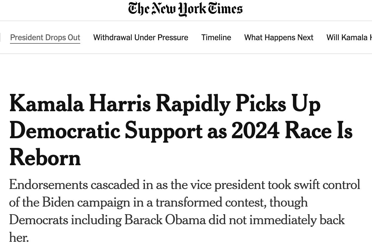 Напомним, накануне Байден объявил о выходе из президентской гонки и выдвинул вместо себя вице-президента Камалу Харрис.