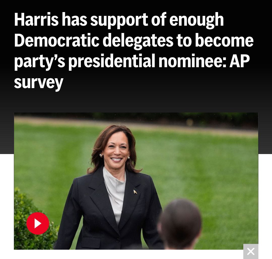 Вице-президент США Камала Харрис заручилась поддержкой достаточного числа демократов, чтобы стать кандидатом в президенты от своей партии.