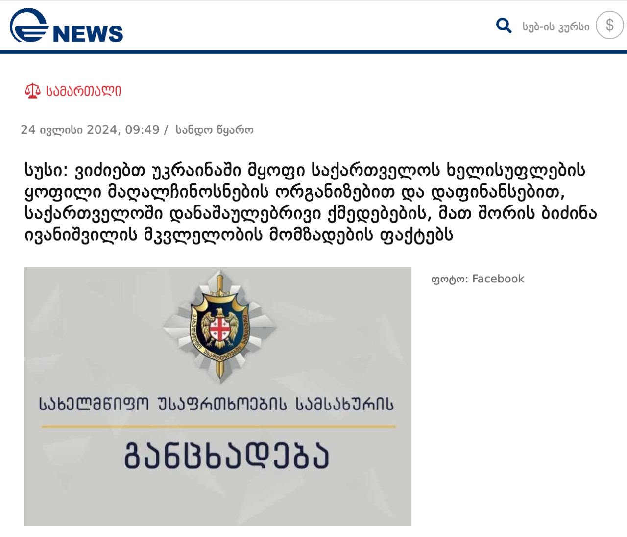 Служба госбезопасности Грузии сообщает, что расследует дело о подготовке теракта против высокопоставленных лиц правящей партии "Грузинская мечта" с целью свержения власти.
