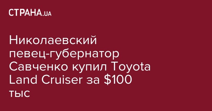 Председатель Николаевской областной государственной администрации Алексей Савченко задекларировал автомобиль Toyota Land Cruiser 200 стоимостью 2,6 млн гривен ($96,2 тыс.) Об этом свидетельствует его декларация на сайте НАПК, передают "Украинские новости".
