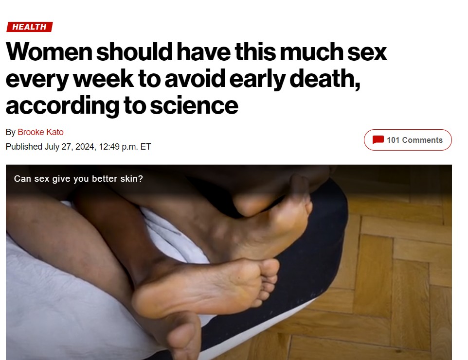 Однако если женщинам может быть полезно больше секса, то мужчинам, может быть выгоднее меньше. Исследователи обнаружили, что чрезмерное количество секса может увеличить риск смертности у мужчин в шесть раз по сравнению с женщинами.