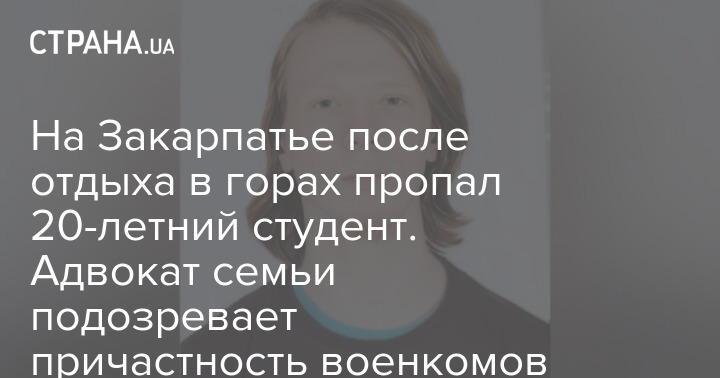 В публикации говорится, что несколько дней назад на западе Украины исчез 20-летний студент Александр Гашевский, который несколько дней был на отдыхе в горах, а затем автобусом возвращался домой во Львов.
