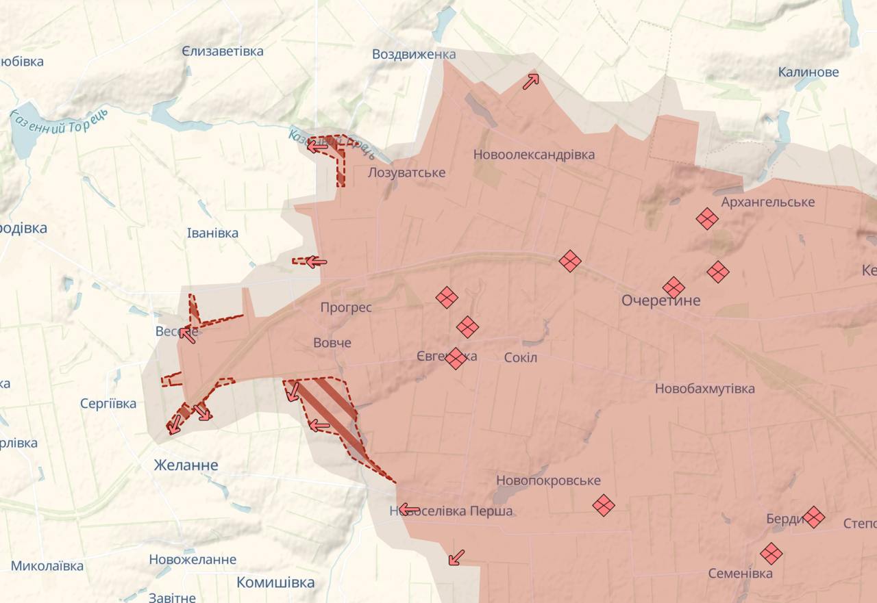 На покровском россиянам удалось захватить Тимофеевку, что примерно 5,5 км от трассы Константиновка-Покровск, а также продвинуться около Ивановки, Желанного и Веселого. Также подтверждается продвижение в Красногоровке.