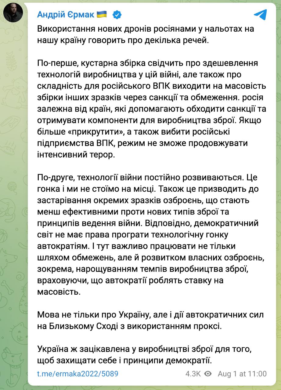 11:08 Глава ОП Андрей Ермак подтвердил, что Россия начала использовать новые дроны.
