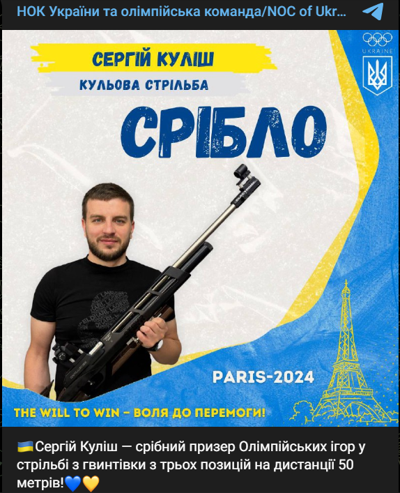 Украина завоевала вторую медаль и первое серебро на Олимпийских играх 2024 года. Сергей Кулиш занял второе место в стрельбе из малокалиберной винтовки из трех положений.