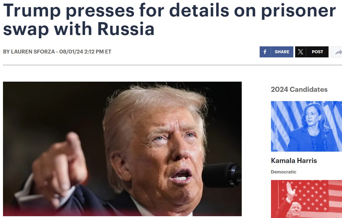 "Ну и когда они собираются опубликовать детали обмена заключёнными с Россией? Сколько людей мы получим в результате? Мы им заплатим наличными? Они нам наличными заплатят (пожалуйста, снимите этот вопрос, потому что я уверен, что ответ "нет")? Мы освобождаем убийц, преступников или головорезов? Просто интересно, потому что мы никогда не заключаем хороших сделок, особенно если речь об обмене заключёнными. Наши "представители на переговорах" всегда позорят нас", – сказал кандидат в президенты США.