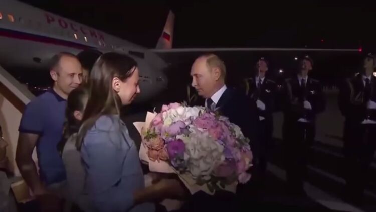 Появились видео обмена заключенными между Россией и Западом. Вернувшихся россиян встретил с цветами Путин