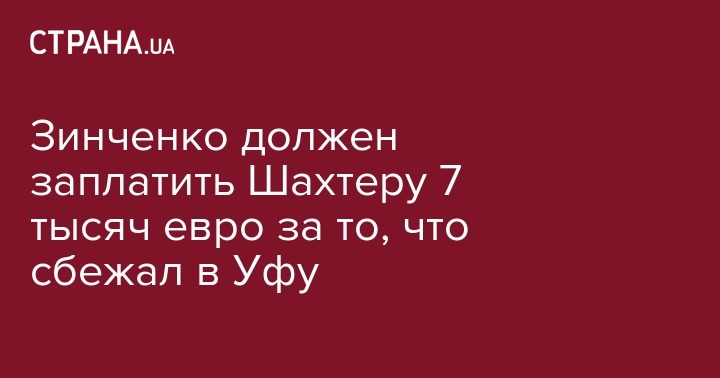 Палата по разрешению споров ФИФА частично удовлетворила иск: Зинченко должен выплатить "Шахтеру" всего 7 тыс. евро - среднее арифметическое зарплаты в "Шахтёре" и "Уфе" за спорный период с июля 2014-го по июль 2015 года.