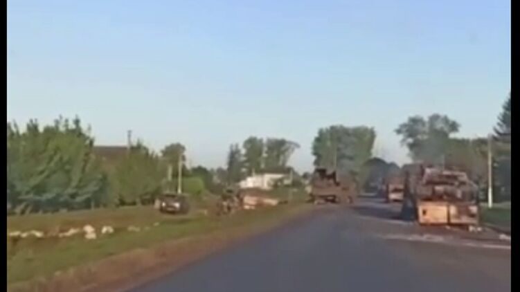 В Курской области атаковали колонну российской техники. Фото: скрин