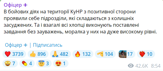 В боевых действиях на территории Курской области РФ с украинской стороны принимают участие бывшие осужденные.