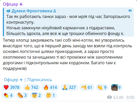 Также военный пишет, что "теперь ребята зачищают все промежутки между захваченными дорогами и подконтрольной нам границей".