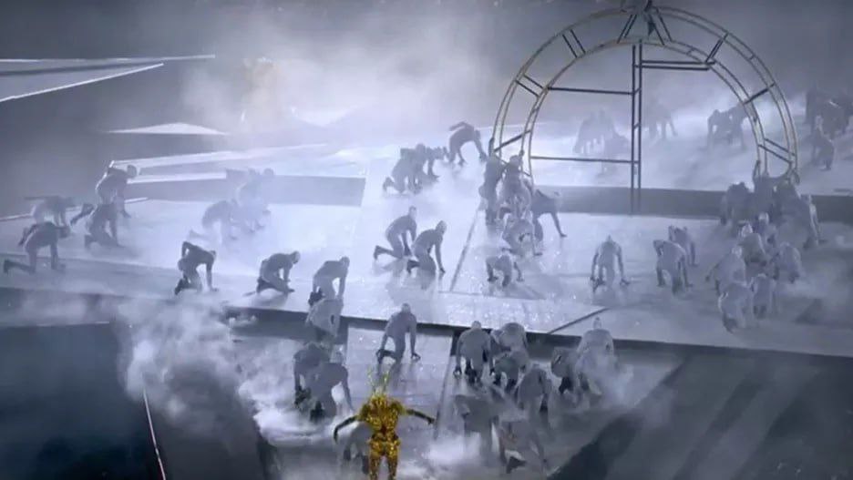 Там встречаются уже знакомые по церемонии открытия фигуры - например, всадник в серебристых доспехах (которого сравнили с библейской Смертью).